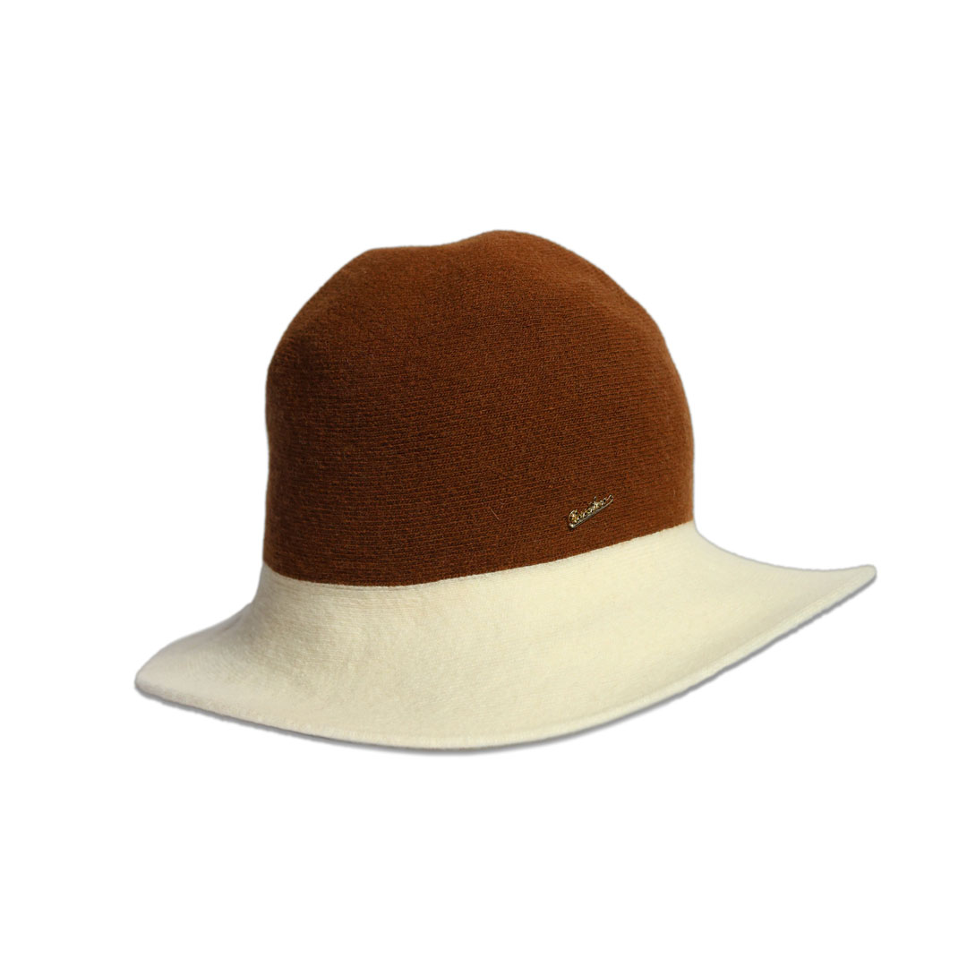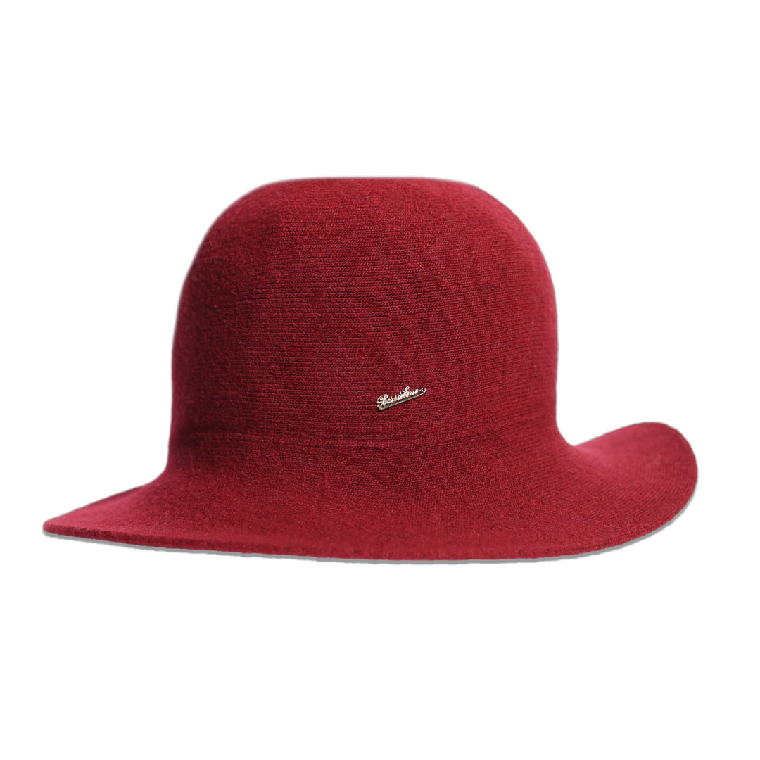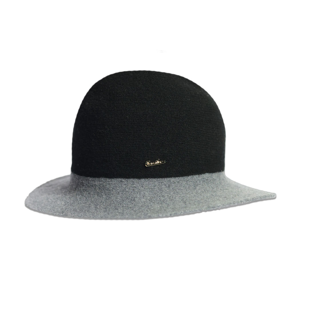 Cappello modello Cloche Angelina in maglia, ferretto rigido nella tesa, taglia unica, marchio Borsalino, made in Italy.