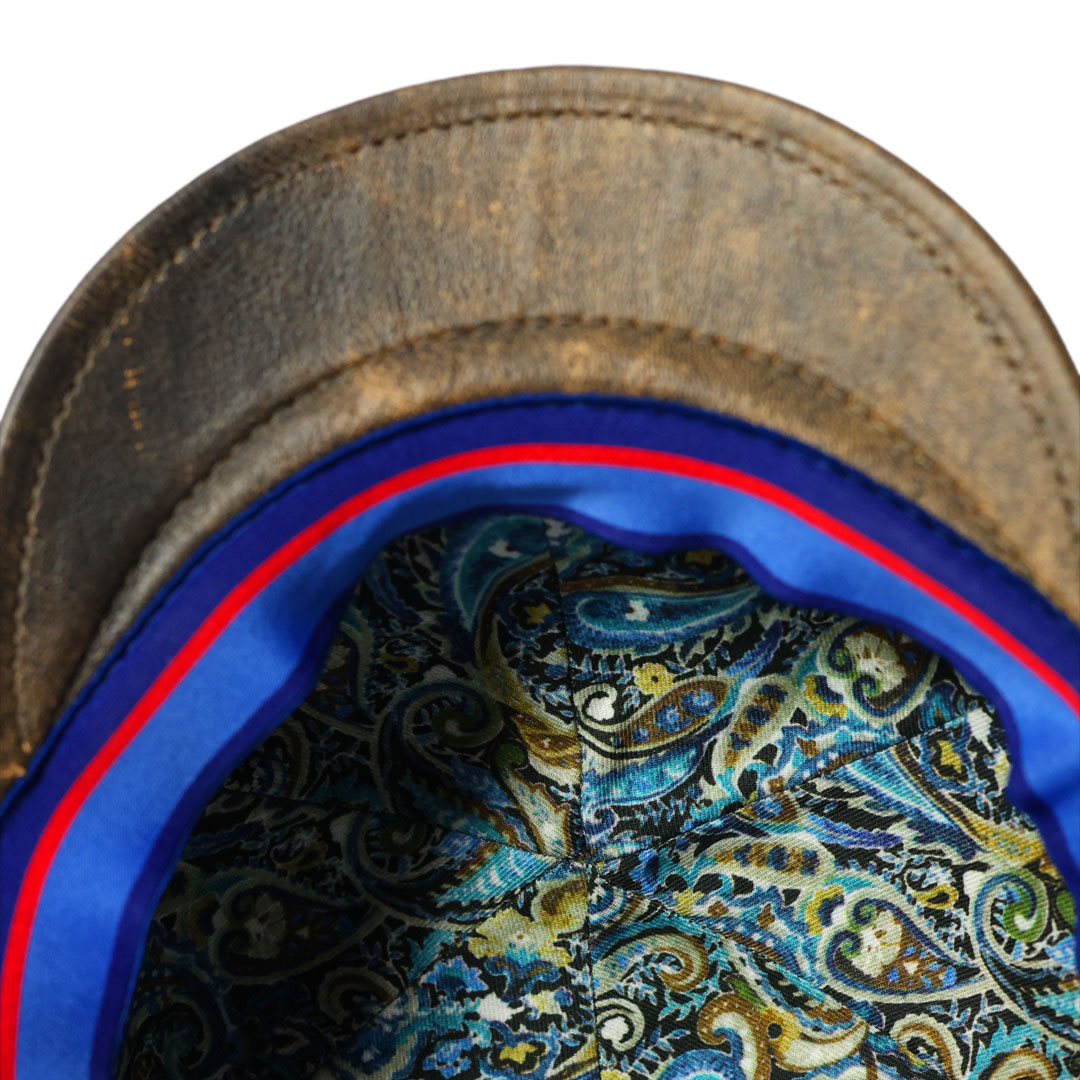 Cappello modello coppola in 100% pelle invecchiata extra-morbida , fodera interna in 100% cotone, made in Italy.