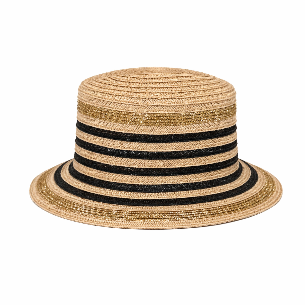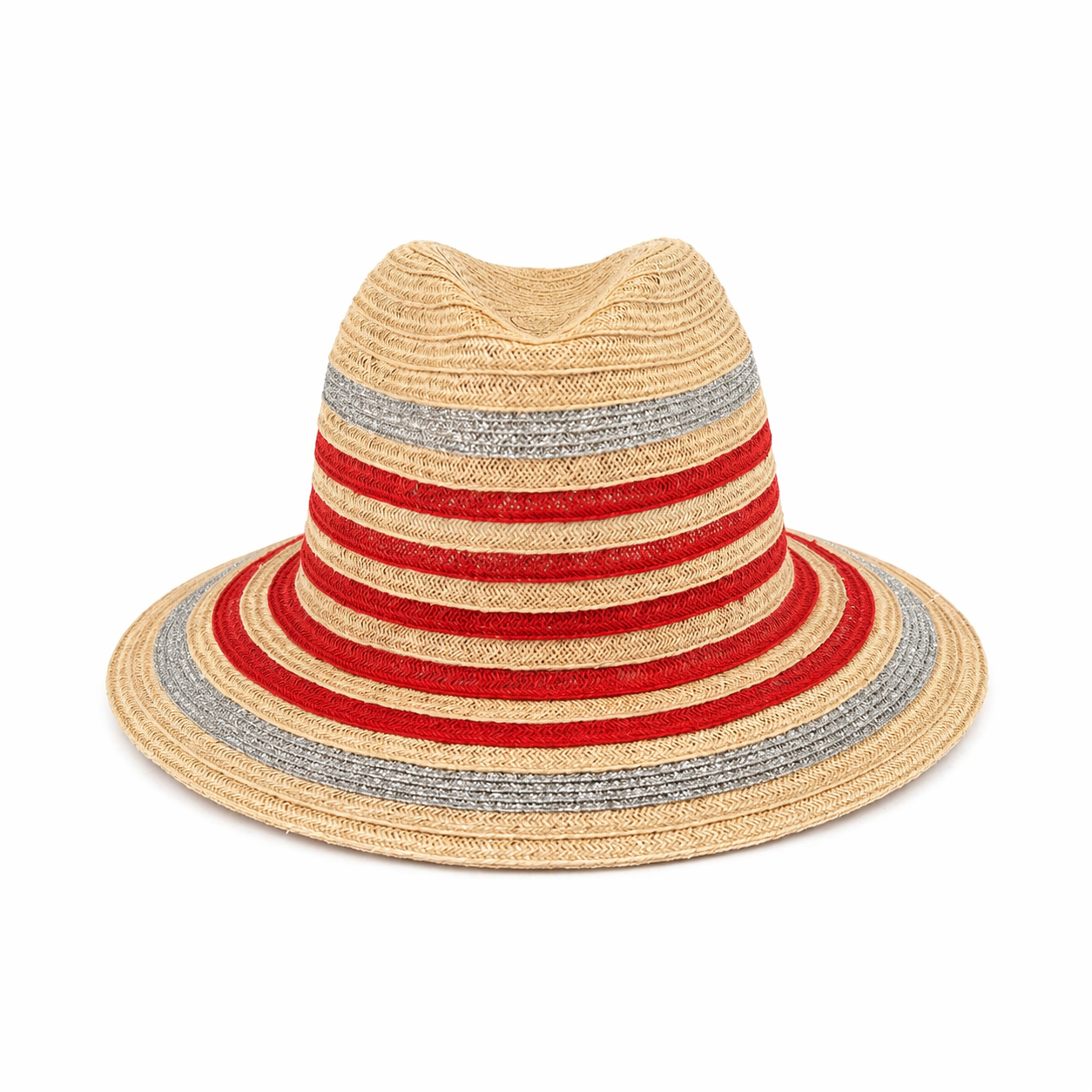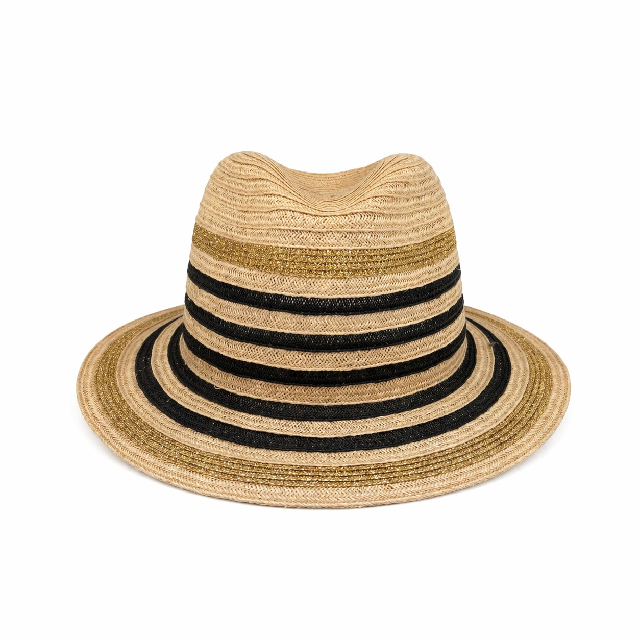 Cappello modello Fedora in canapa intrecciata e lurex ,tesa cm 6, leggero  fresco e flessibile , taglia unica M, marchio Marzi, made in Italy.