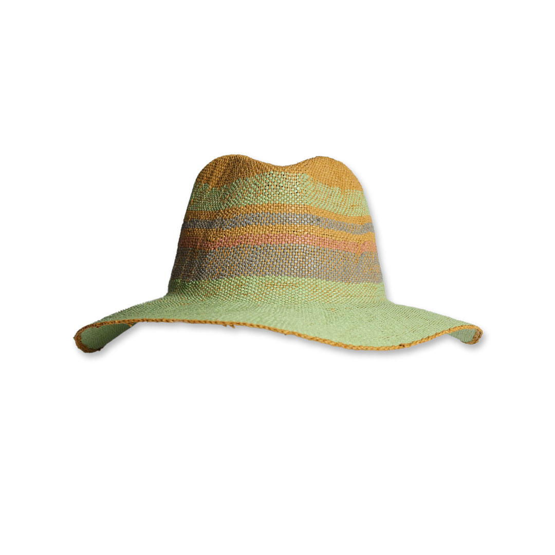 Cappello modello Fedora in 100% papier crochet ,3 varianti di colore sfumate, tesa morbida 8 cm , pieghevole, taglia unica con regolatore interno , made in Italy.