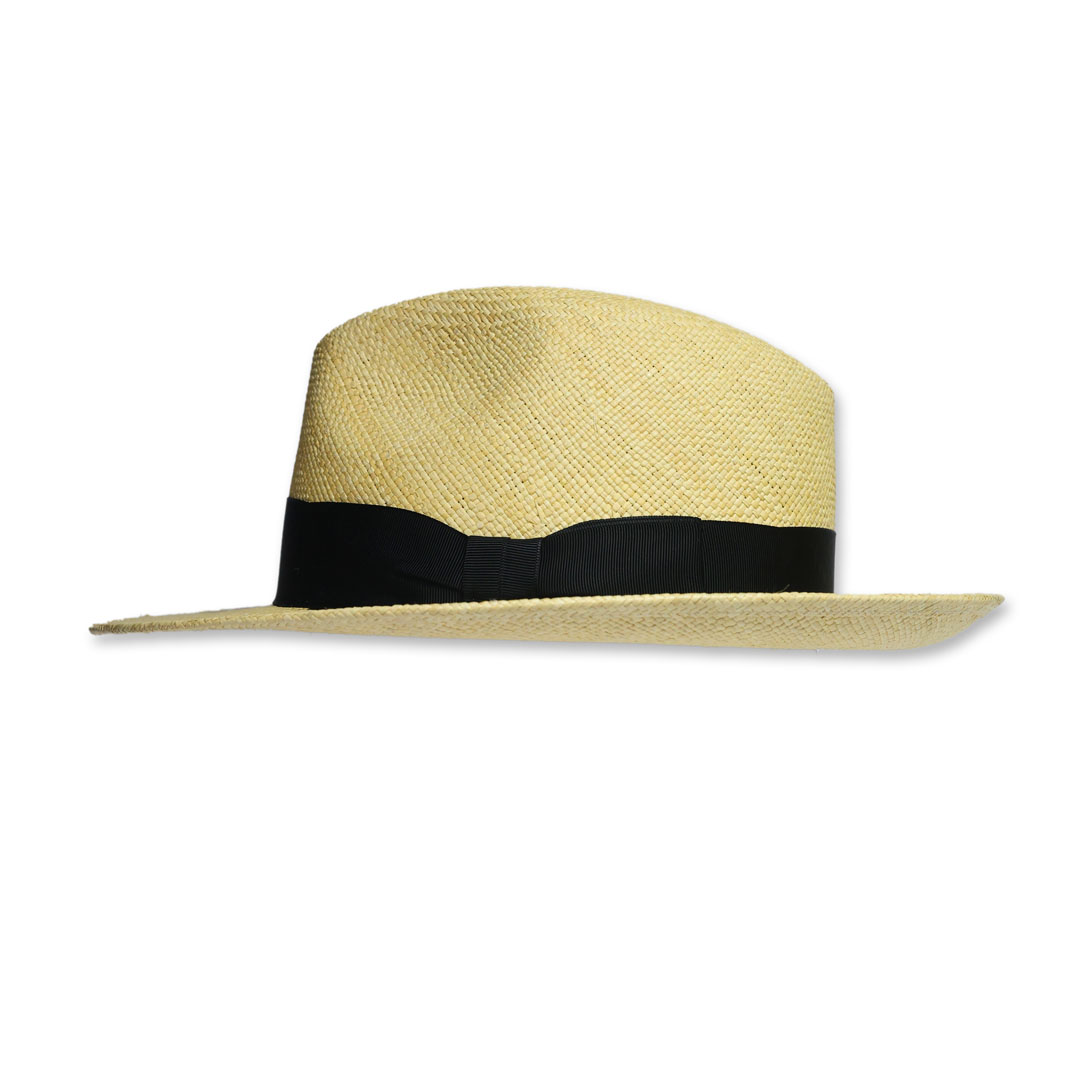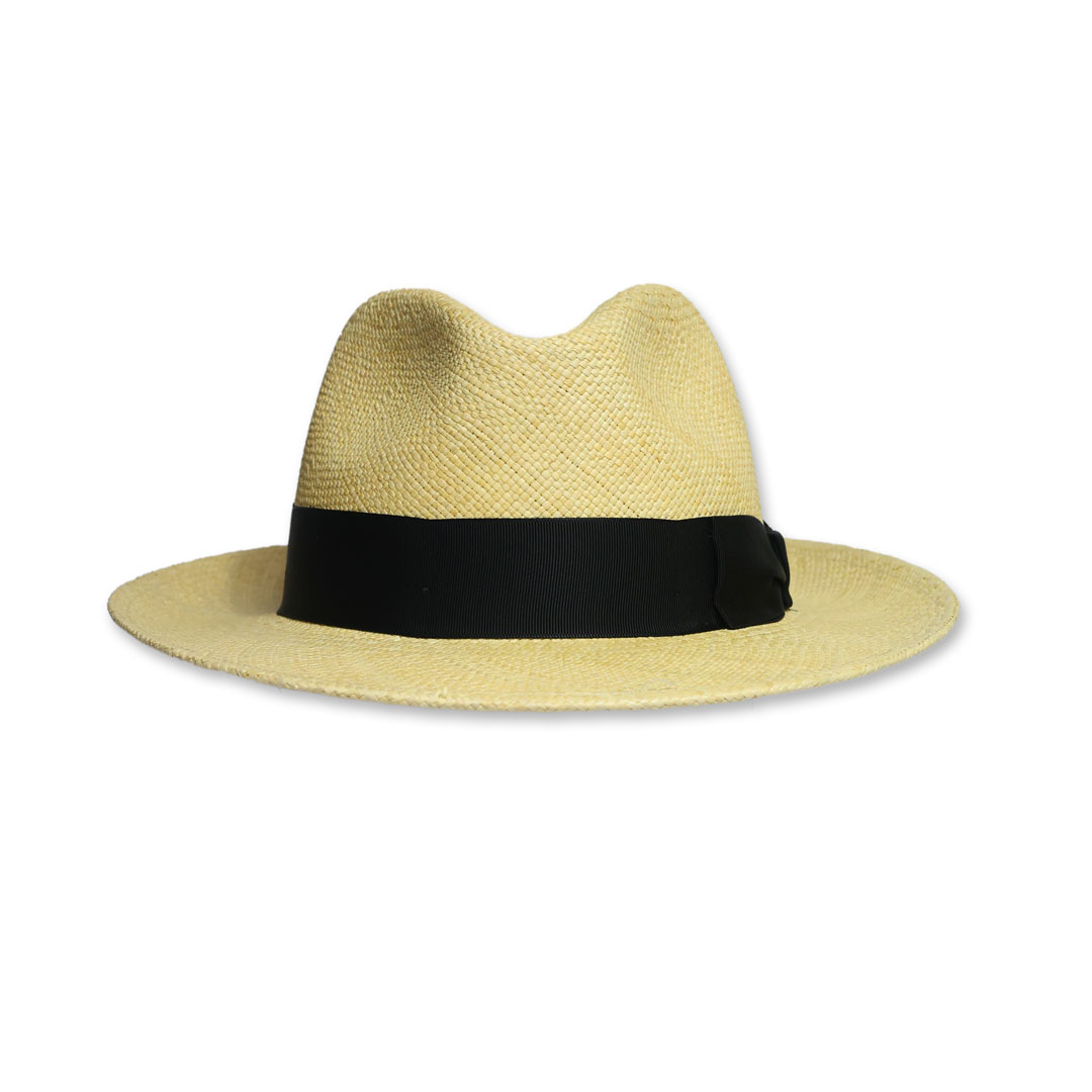 Cappello modello Fedora in 100% panama grana fine color naturale , tesa  cm 6 ,nastro gros-grain nero, unisex, made in Italy .