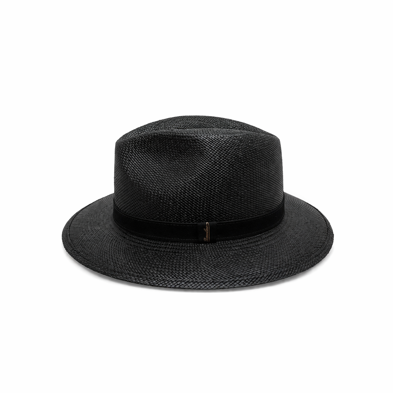 Cappello modello Country in 100% panama quito color nero ,tesa cm 6, nastro di nabuk in tinta con dettaglio dorato laterale, unisex, marchio Borsalino, made in Italy .