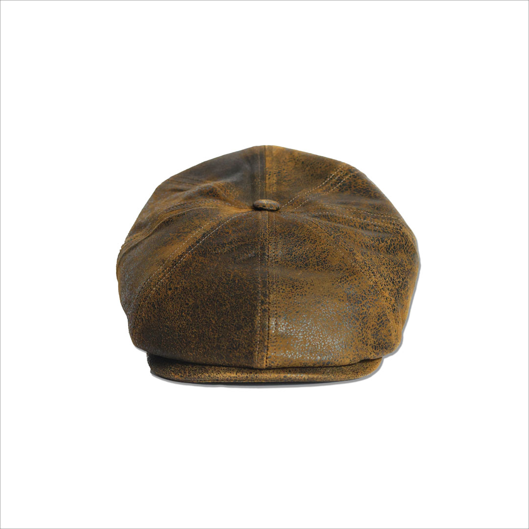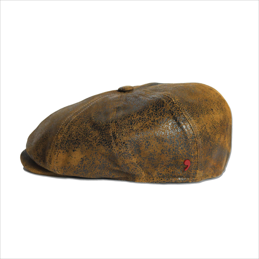 Cappello modello Peaky Blinders Shelby in vera pelle effetto vintage,  fodera interna in 100% cotone , marchio Alfonso D’Este, made in Italy.
